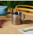 Taza de acero inoxidable perfecta para irte de camping o picnic y disfrutar de tu café o cualquier bebida caliente.