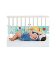 Incluye un sonajero y papel arrugado para estimular el oído, un anillo de detinción para aliviar las encías, un espejo para desarrollar la vista, cintas y materiales con texturas para desarrollar el tacto, ...