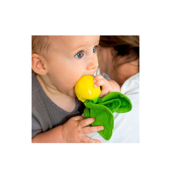 Descubre Lemon doudou-mordedor, doudou y mordedor con forma de limon al mismo tiempo, un juguete sensorial para estimular y calmar a los bebés.