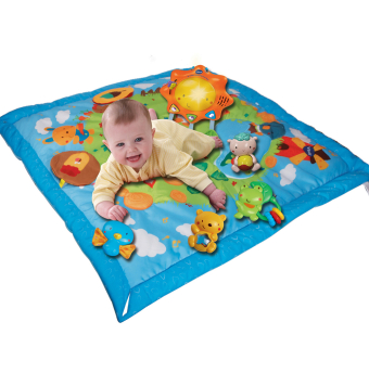 Incluye un sol luminoso con tres modos de juego, sensor de movimiento y siete elementos móviles para jugar sin parar.