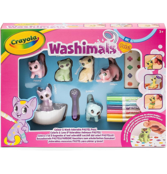 Los Washimals de Crayola son adorables mascotas que los niños podrán decorar, personalizar y cuidar con los rotuladores incluidos según su fantasía... ¡Y no es todo! La diversión sigue dándoles un buen baño, lavándolos con el cepillito, quitándoles el color y ¡empezando otra vez a decorarlos! ¡Para horas de diversión creativa!Adorables mascotas para cuidar.
