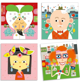 Juego de manualidades donde creas tu propio personaje. Mediante el conjunto de pegatinas completaras los diferentes personajes mostrando que cada cual es único.