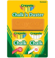 Dos cajas de tizas, una de 12 tizas blancas y otra de 12 tizas de colores más un borrador.