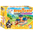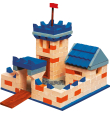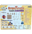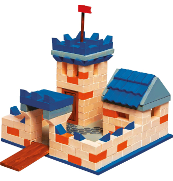 Es un set para construir un castillo medieval con ladrillos, cemento y herramientas en miniatura