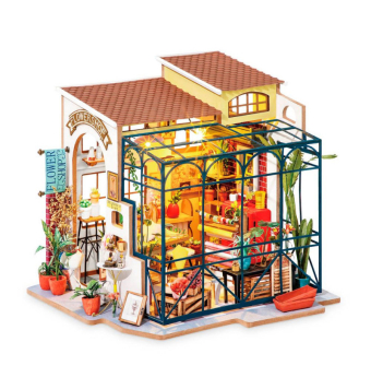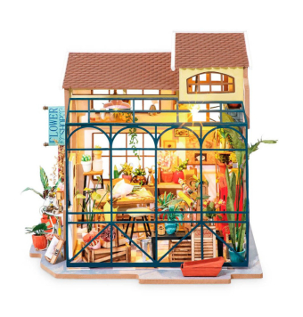 La Maqueta Tienda de Flores Emily de Robotime es una encantadora casa en miniatura DIY, ideal para quienes disfrutan de las manualidades y la decoración.