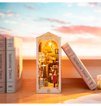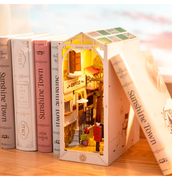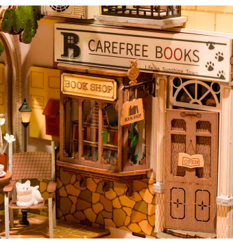 Al completarlo, descubrirás una romántica escena urbana con una acogedora librería y cafetería, perfecta para decorar tu estantería.