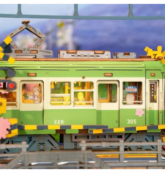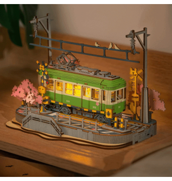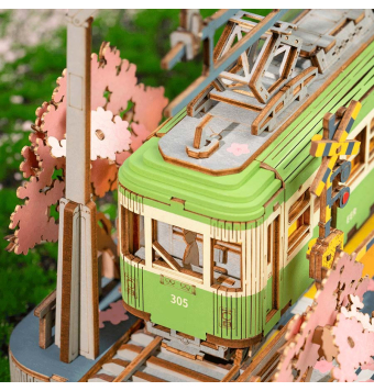 Robotime te ofrece esta romántica maqueta para montar del tranvía en un encantador rompecabezas, convirtiéndolo en una pieza decorativa única que simboliza la vida urbana japonesa y el florecer del romance.