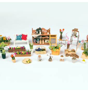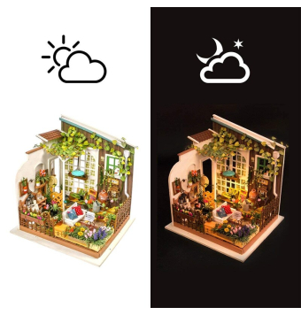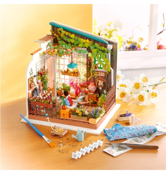 La Maqueta Flower House de Robotime-Rolife, modelo Miller's Garden, es una encantadora casa en miniatura con un jardín lleno de plantas y flores.