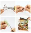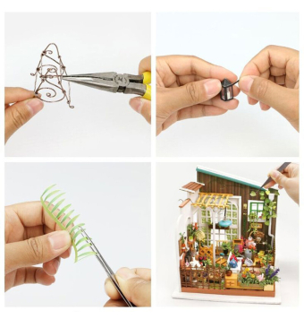 Con detalles realistas como ventanas con cortinas, barandales de madera, marcos, cercas, macetas y camas de flores, esta maqueta ofrece una experiencia relajante al ensamblar tu propia casa de jardín soñada.