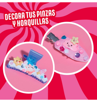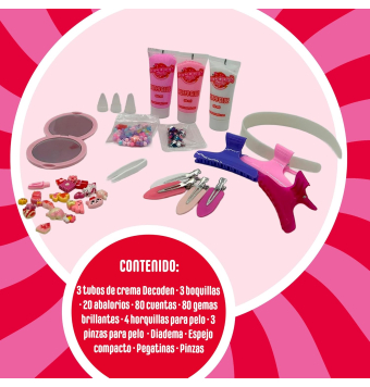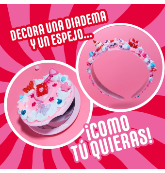 Incluye accesorios para el pelo, un espejo compacto, gran variedad de cuentas y abalorios para crear sin parar!