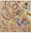 Este set de manualidades incluye más de 200 cuentas decorativas en diferentes tamaños y en forma de corazones, flores y mariposas y