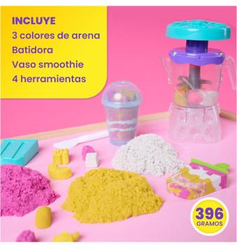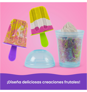 arena magica! Este set permite moldear frutas, crear capas y preparar batidos y polos usando la batidora, el vaso y el molde incluidos