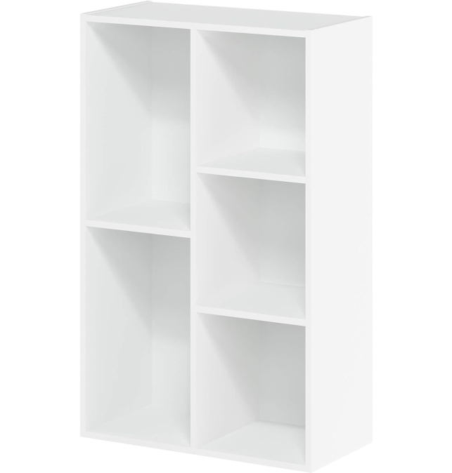 Este moderno y funcional mueble blanco es ideal para organizar libros, decoración o artículos del hogar.