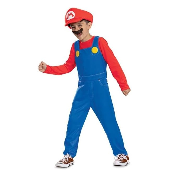 Aspecto épico, fácil de llevar: con detalles fieles al videojuego y un ajuste rápido y cómodo, tu hijo se transformará en Mario, de Super