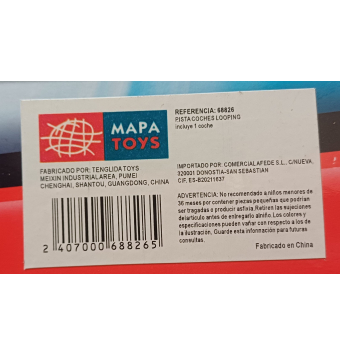 Pista coches looping tubo, con 2 coches que funcionan a retroficción, loopings y esfera para realizar giros de 360º.