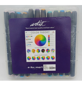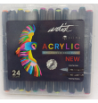 Caja con 24 unidades de rotuladores acrílicos de doble punta. Punta fina y punta pincel