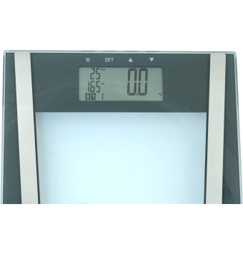 Báscula de baño ultraplana LCD en diseño de cristal con análisis corporal, para hasta 12 usuarios.