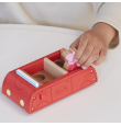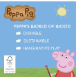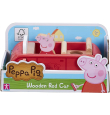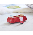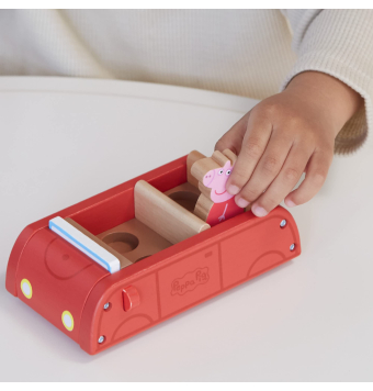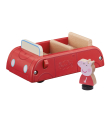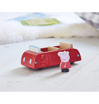 Coche rojo de madera de Peppa Pig movible con una figura de madera de Peppa, diseñada para que se pueda colocar fácilmente en cualquiera de los 4 compartimentos del vehículo.