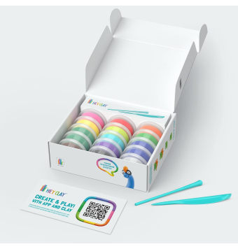 Incluye 15 botes de plastilina,2 herramientas para esculpir y código de acceso para la aplicación.