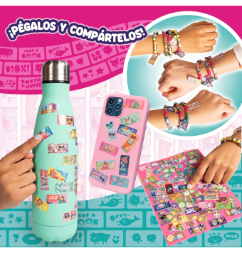 Este pack incluye 7 rollos intercambiables también incluye un cuaderno para coleccionar las pegatinas.