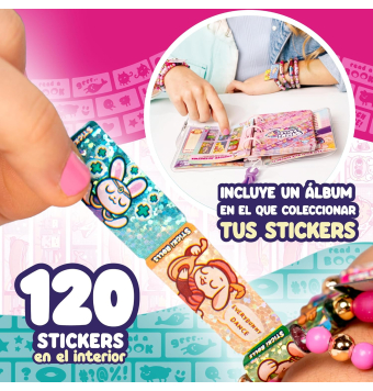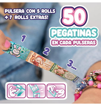 Cada rollo de la pulsera contiene 10 pegatinas fáciles de despegar, sumando un total de 50 pegatinas por pulsera.
