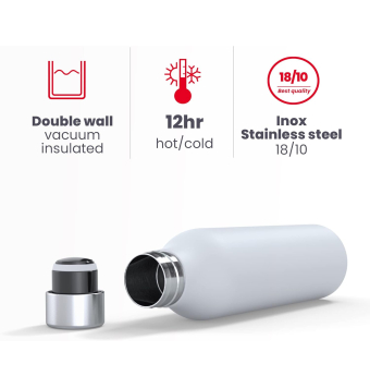 Fabricado en Acero Inoxidable 18/10. Su tecnología de cierre con rosca hermética a prueba de fugas y su doble pared con vacío