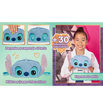 ✔ Incluye: 1 bolso Purse Pets Stitch, 3 pilas AAA y guía de instrucciones.