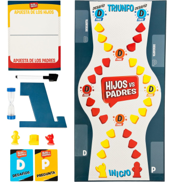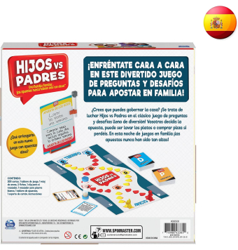 Hijos contra Padres es uno de los juegos de mesa familiares más famosos de todos los tiempos. En Padres contra Hijos Juego de Mesa, los miembros de la familia se enfrentan en una divertida competición llena de acción con preguntas y desafíos. Hay una apuesta en juego. ¿Será tu equipo el vencedor de esta noche de juegos en familia?