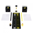 Incluye tablero de juego, 2 fichas, 2 pizarras, 2 rotuladores de tinta al agua, 200 cartas de pista (con 600 pistas), 2 cajas de cartas, 1 reloj de arena.