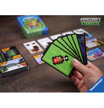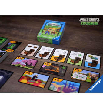 El divertido juego de cartas cooperativo de Minecraft invita a niños y niñas a explorar los pintorescos paisajes del famoso juego;