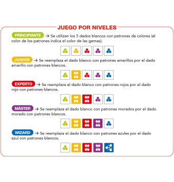 ¡Existen 10.794 combinaciones posibles! El primero en completar el tablero gana. Vuelve a tirar los dados blancos o te atreverás a