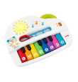 Con cuatro opciones de juego, este piano luminoso premia cada tecla que el niño pulsa con notas musicales, sonidos de animales como el pato y la vaca, y canciones y frases educativas que enseñan colores, números y formas.