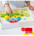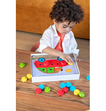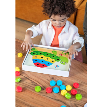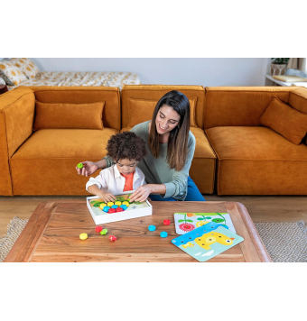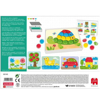 Juego educativo preescolar en el que los más pequeños aprenden los colores encajando correctamente los pivotes en cada lámina