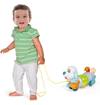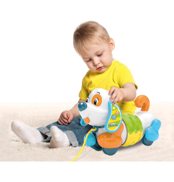 Un cachorrito adorable para arrastrar que se convertirá en el compañero de juegos inseparable de los más pequeños. Este cachorrito les encantará y divertirá mientras anda gracias a sus patitas, que se mueven de verdad. Mientras se mueve, este tierno cachorrito emite un sonido divertido. Desarrolla la percepción sensorial, la coordinación física y la imaginación de los niños