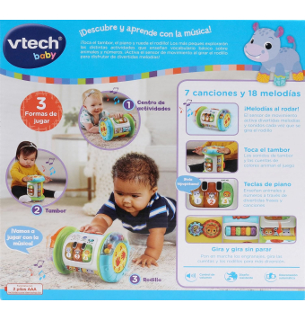 DESCUBRE Y APRENDE CON LA MÚSICA! ¡Toca el tambor, el piano y rueda el rodillo! Los más peques explorarán las distintas actividades