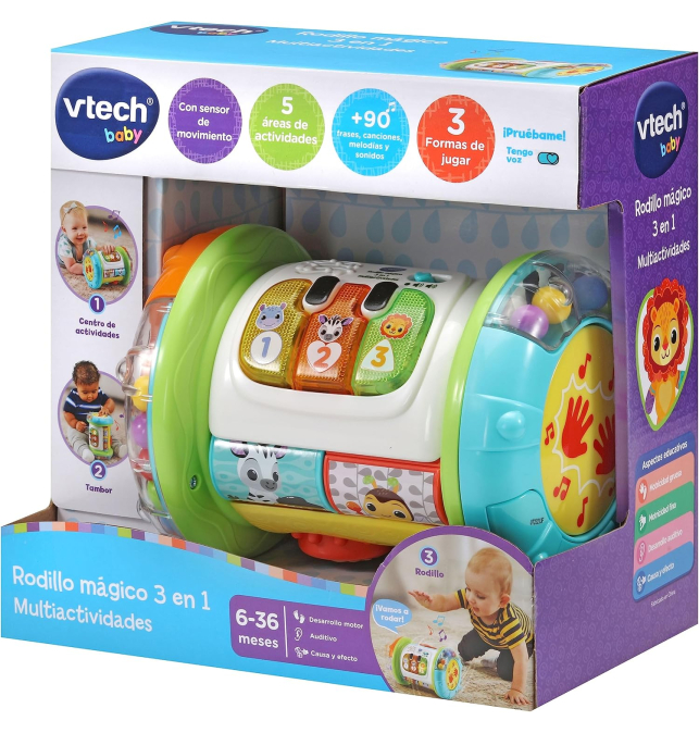que enseñan vocabulario básico sobre animales y números. ¡Activa el sensor de movimiento al girar el rodillo para disfrutar de