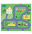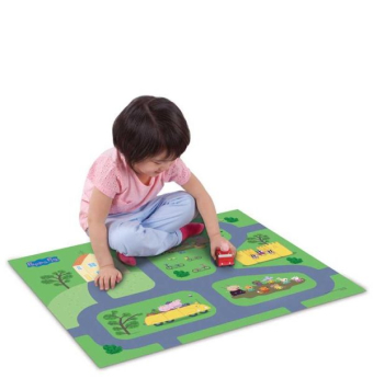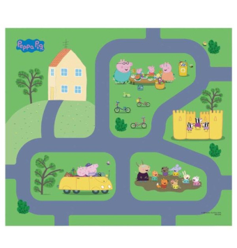 Alfombra de tela con el mapa de la ciudad de Peppa para que el niño haga rutas con su coche de juguete.