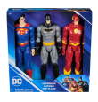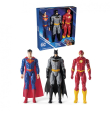 Incluye 3 figuras de 30 cm de los legendarios Superman, Batman y The Flash, cada una con un diseño detallado fiel a su apariencia icónica.