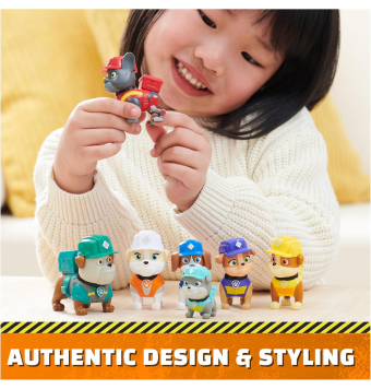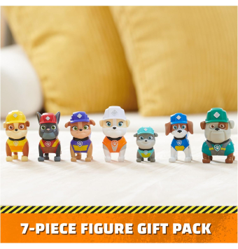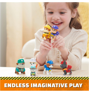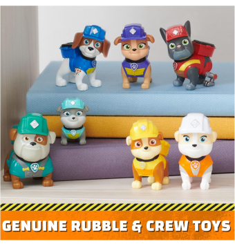¡Recrea las emocionantes aventuras de la serie Equipo Rubble ¡Acompaña a tu héroe favorito y a su familia de cachorros constructores formada por Wheeler, Mix, Charger, Motor, Tia Crane y Abuelo Gravel y vive la diversión en casa. La Patrulla Canina 7 figuras de Rubble & Crew, son perfectas para los niños a partir de 3 años. Los juguetes Patrulla Canina son tan fáciles de manejar que proporcionarán horas de diversión