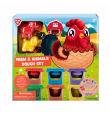 Contiene 6 botes de plastilina,vallas, moldes para crear animales, herramientas para manipular la plastilina. En total contiene 25 piezas