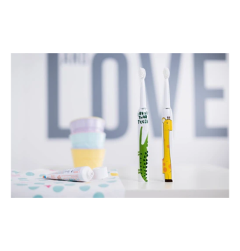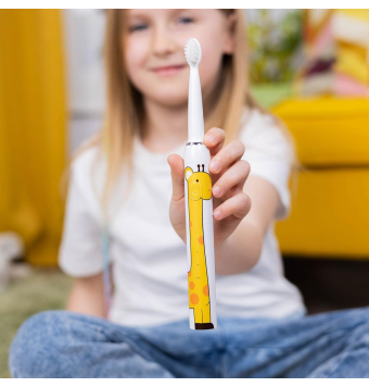 Con este cepillo de dientes con vibración jirafa con 4 cabezales de repuesto tus hijos aprenderán a cuidarse por ellos mismos su higiene bucal.