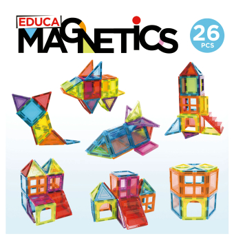 Educa Magnetics 26 piezas es un juego de construcción que permite crear figuras geométricas a los niños con bloques magnéticos 3D.