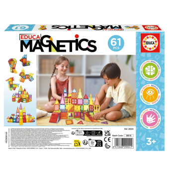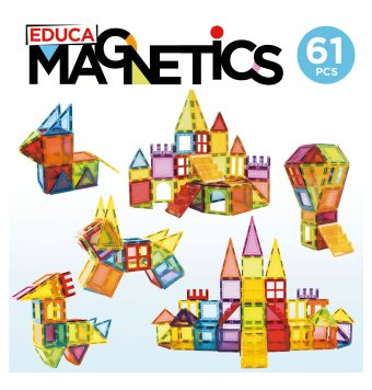 1Educa Magnetics 61 piezas es un juego de construcción que permite crear figuras geométricas a los niños con bloques magnéticos 3D.