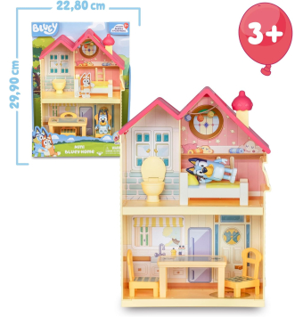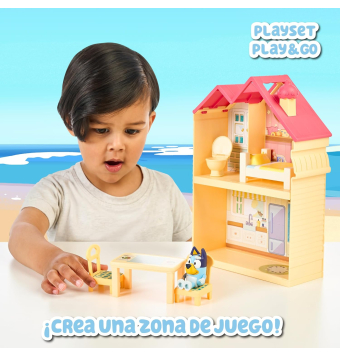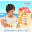 • Incluye una casa con tres habitaciones diferentes con muebles como una cama, una mesa con unas sillas y también, con una figura de Bluey!
