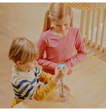 Dispone de un accesorio extraíble y de cuchillas giratorias que mezclan, remueven y hacen puré; todo ello, por supuesto, no es más que una cuestión de imaginación y diversión cuando los niños juegan a sus juegos favoritos de simulación en su propia cocina...