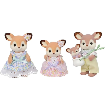 La familia Deer de Sylvanian tiene adorables orejas grandes. Este juego contiene a la familia Deer en trajes florales a juego.