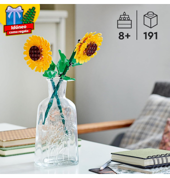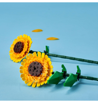 Crea una bonita decoración con estos girasoles sus hojas verdes y tallos ajustablesde Lego.Nunca se marchitarán.