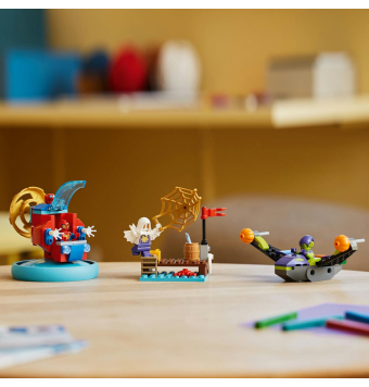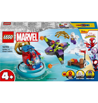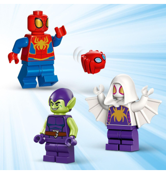 Incluye minifiguras de Spidey, el Duende Verde y Spider Fantasma. El juego cuenta con el aerodeslizador arácnido de Spidey y muchos