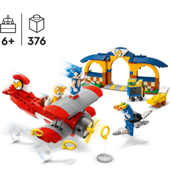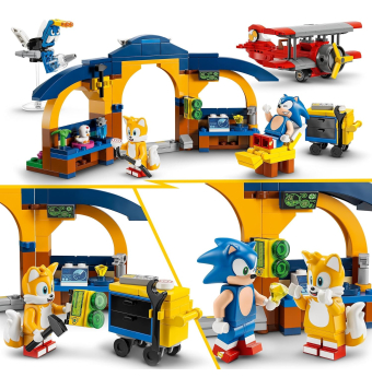 El juego de acción se une a la diversión creativa en el set de construcción LEGO Sonic the Hedgehog Taller y Avión Tornado de Tails.