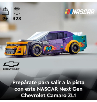 Coche de carreras de juguete LEGO Speed Champions NASCAR Next Gen Chevrolet Camaro ZL1. Viene con una minifigura LEGO de